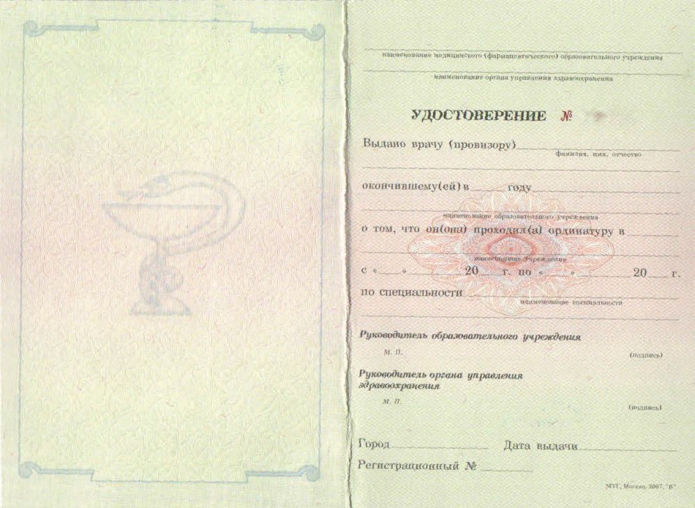 • Документ: Удостоверение ординатура