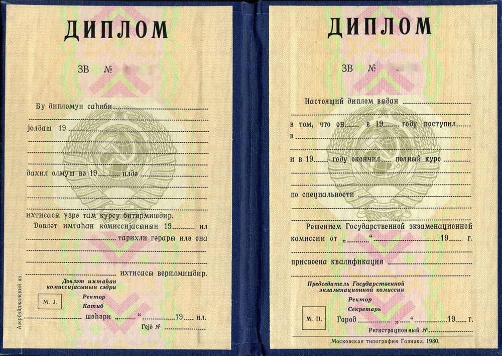 • Документ: Диплом СССР республики Азербайджан